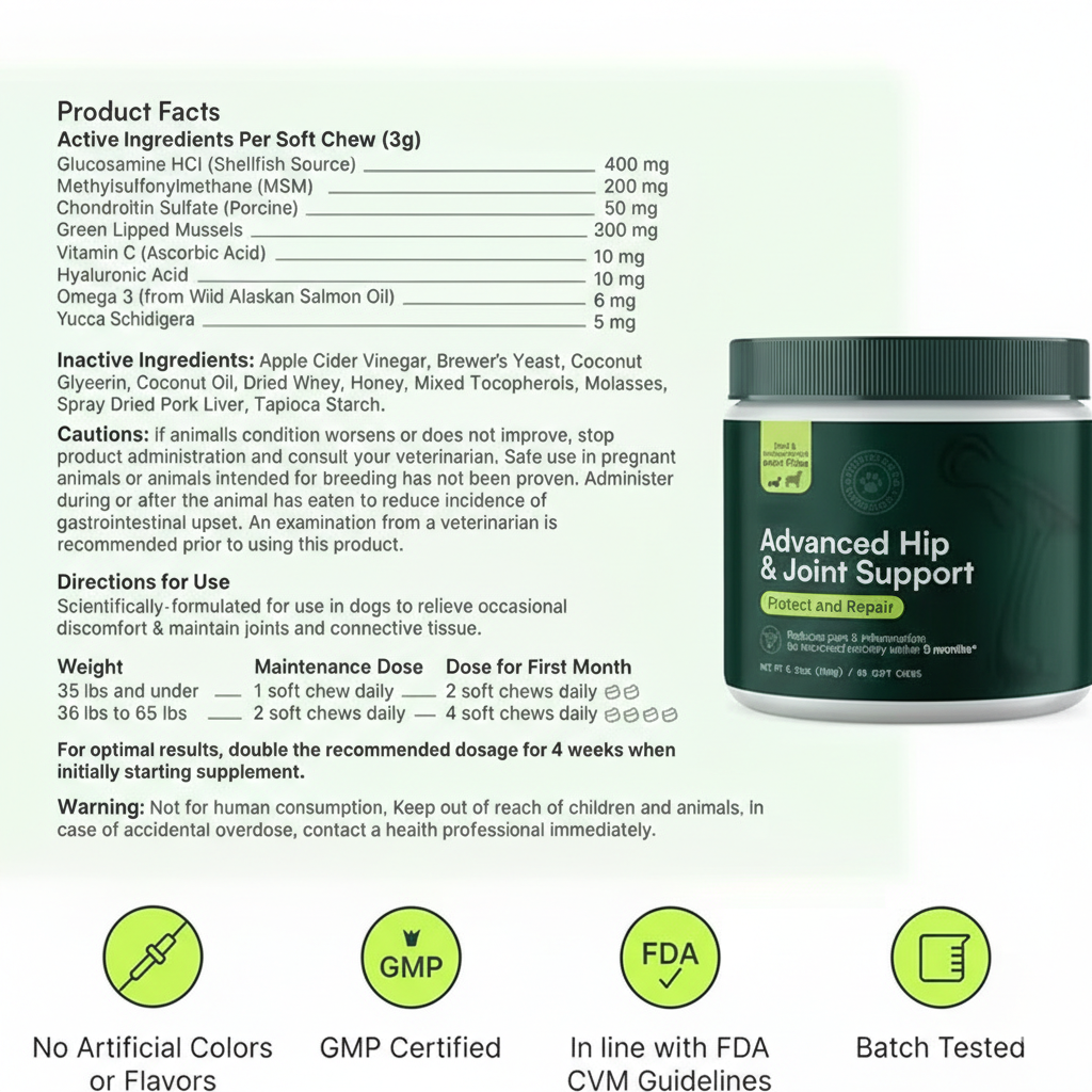 Advanced vet-grade ingredients at direct-to-consumer prices. No middleman markup. Just premium joint support your dog deserves."